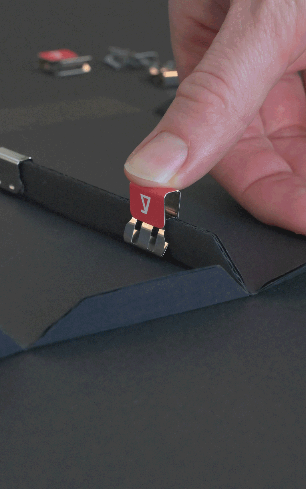 Dank den patentierten Metallclips erfolgt der Aufbau ganz ohne Klebstoff. So bleibt alles sauber und trocken.