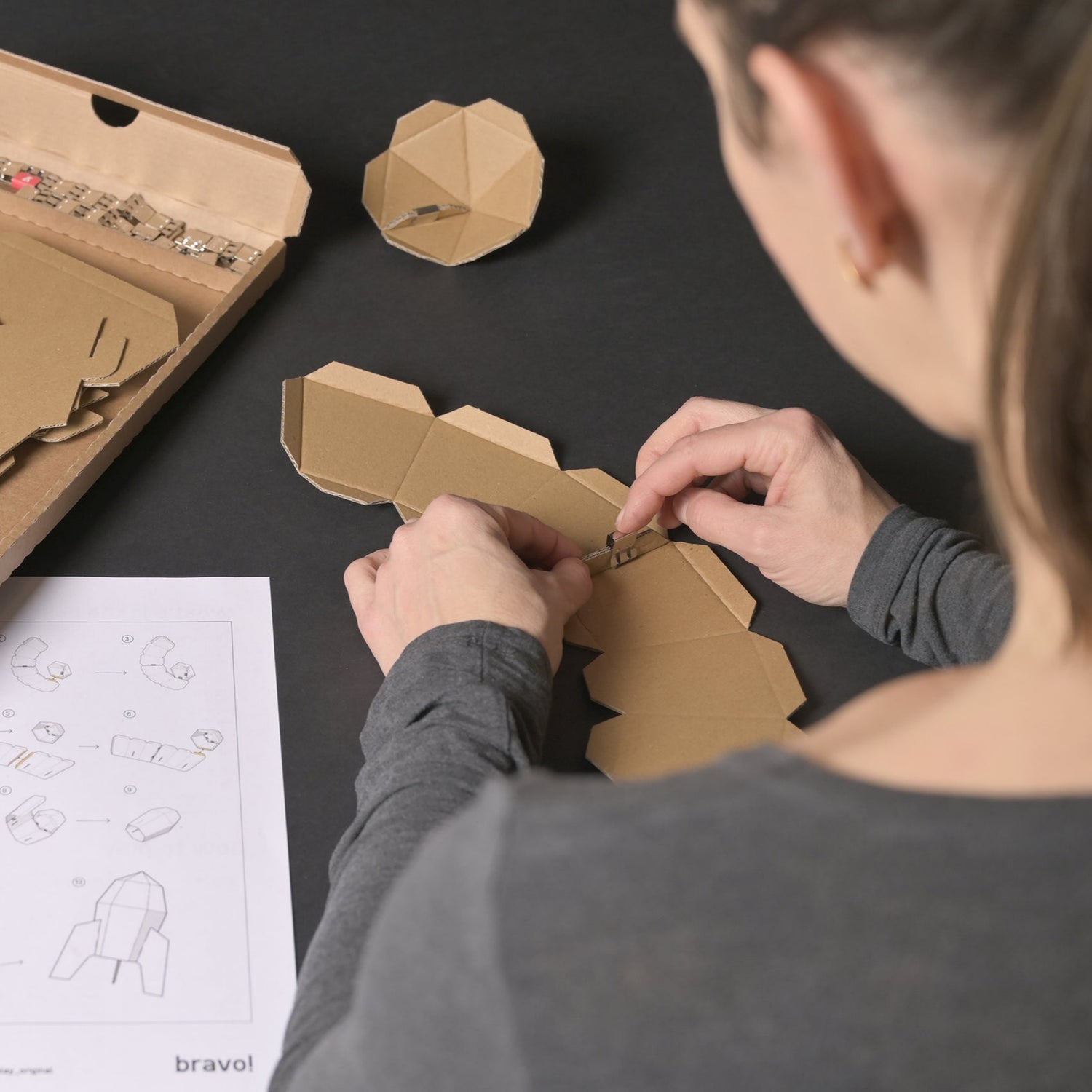 Unsere Design-Kits bestehen aus stabilem und widerstandsfähigem Wellkarton. Alle Teile sind vorgestanzt, damit du sofort loslegen kannst!